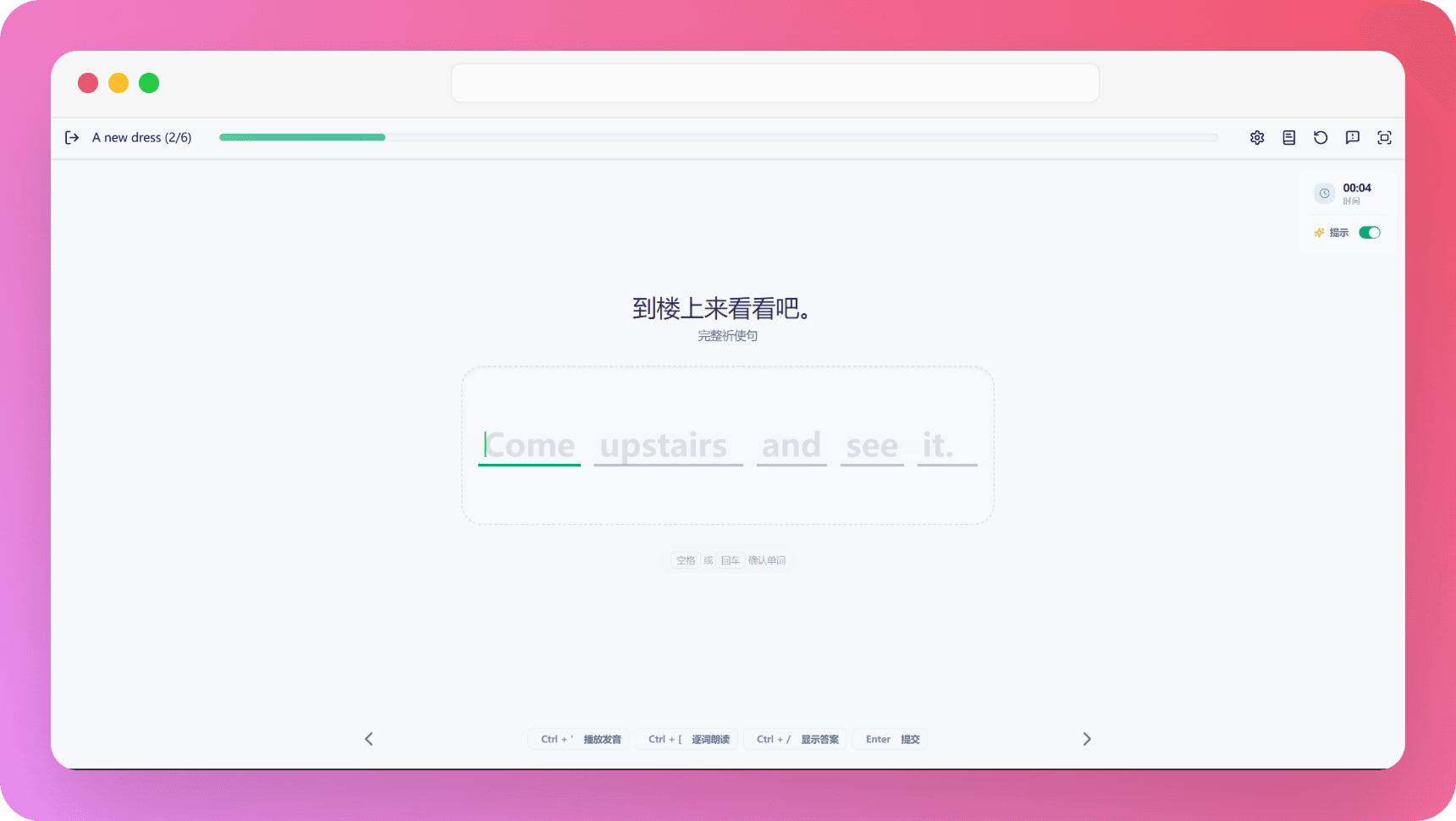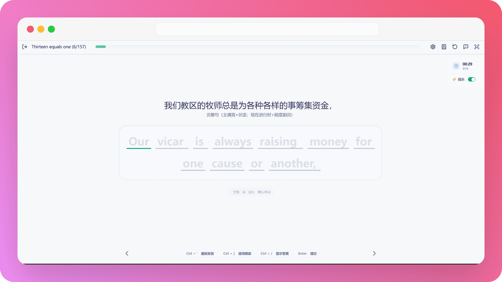 句会了坚持三件事:连词成句、i+1难度递进、以终为始。通过三种训练模式引导用户从"能认"稳步过渡到"能用",配合数据可视化、闯关激励与即时反馈,提升英语表达力。